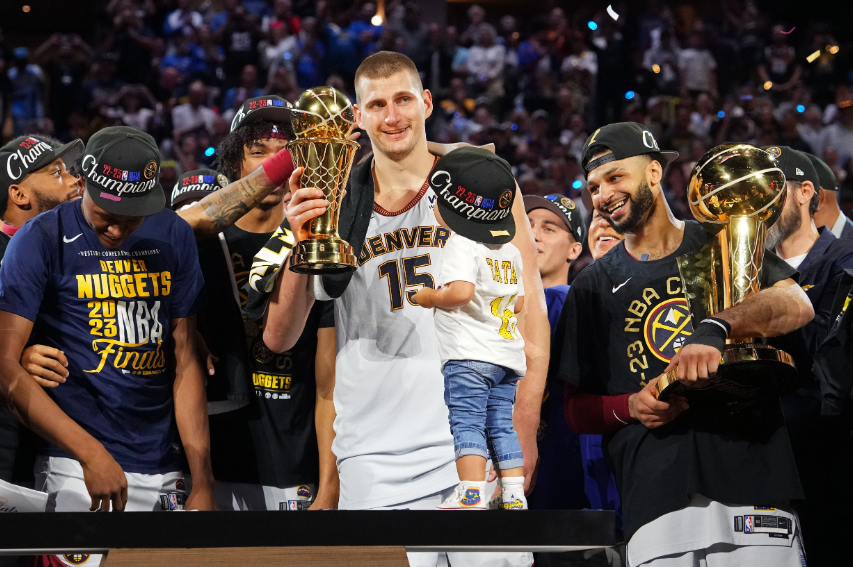 二十四年后,22-23赛季的无冕MVP尼古拉-约基奇也是如此,为丹佛带来了建队56年、进入NBA46年来的首次总决赛。面对一路不被看好但一路逆袭的“黑八”热火和吉米-巴特勒,实力更强的掘金兵不血刃,绅士横扫对手,队史首次捧杯。