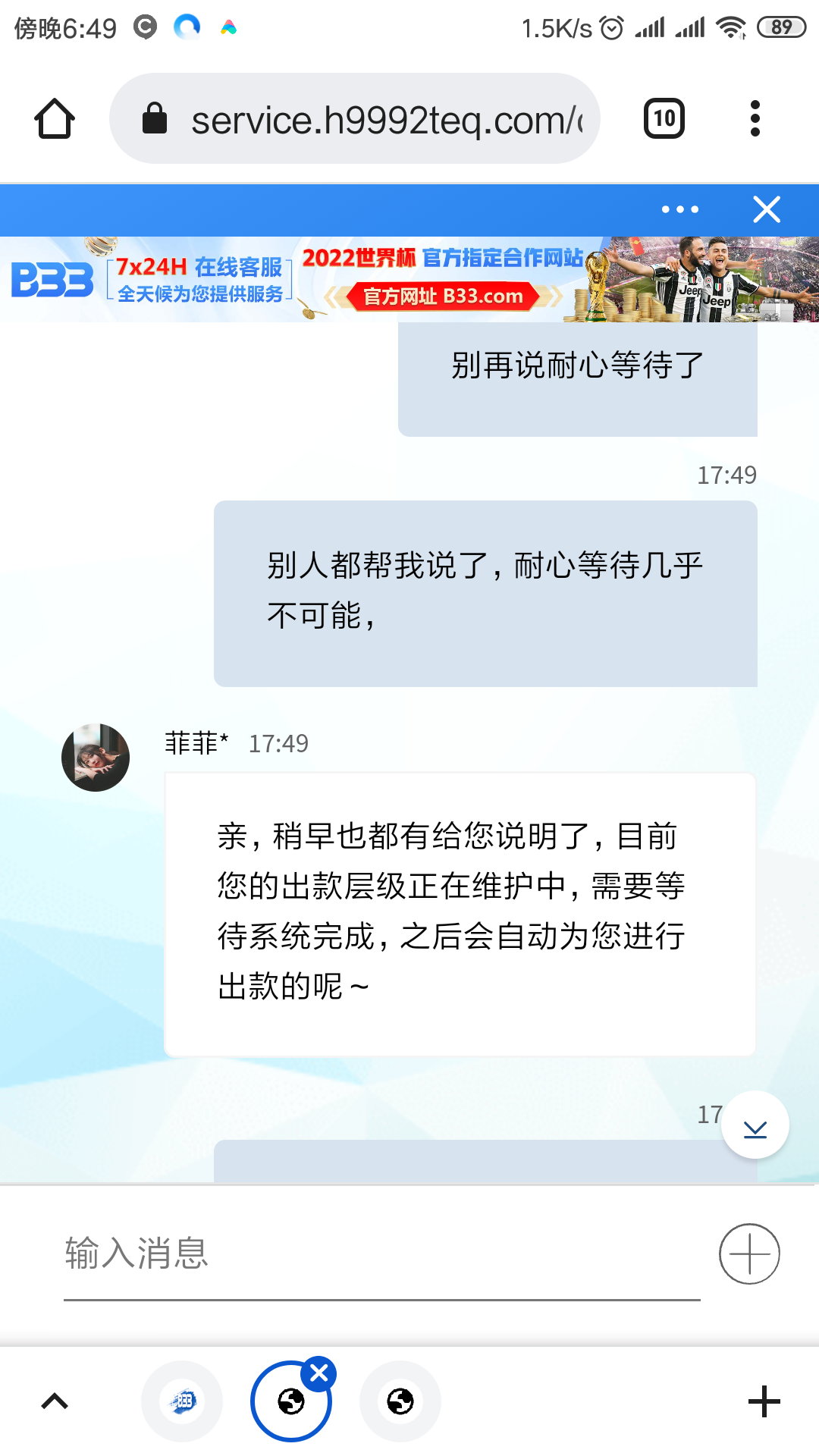 充值后联系客服都没有回复,不给上分的垃圾网