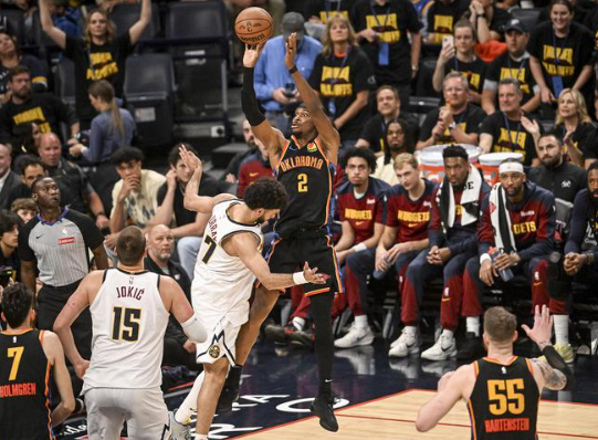 雷霆8人上双狂胜掘金1-1 SGA34+8约基奇三节6犯